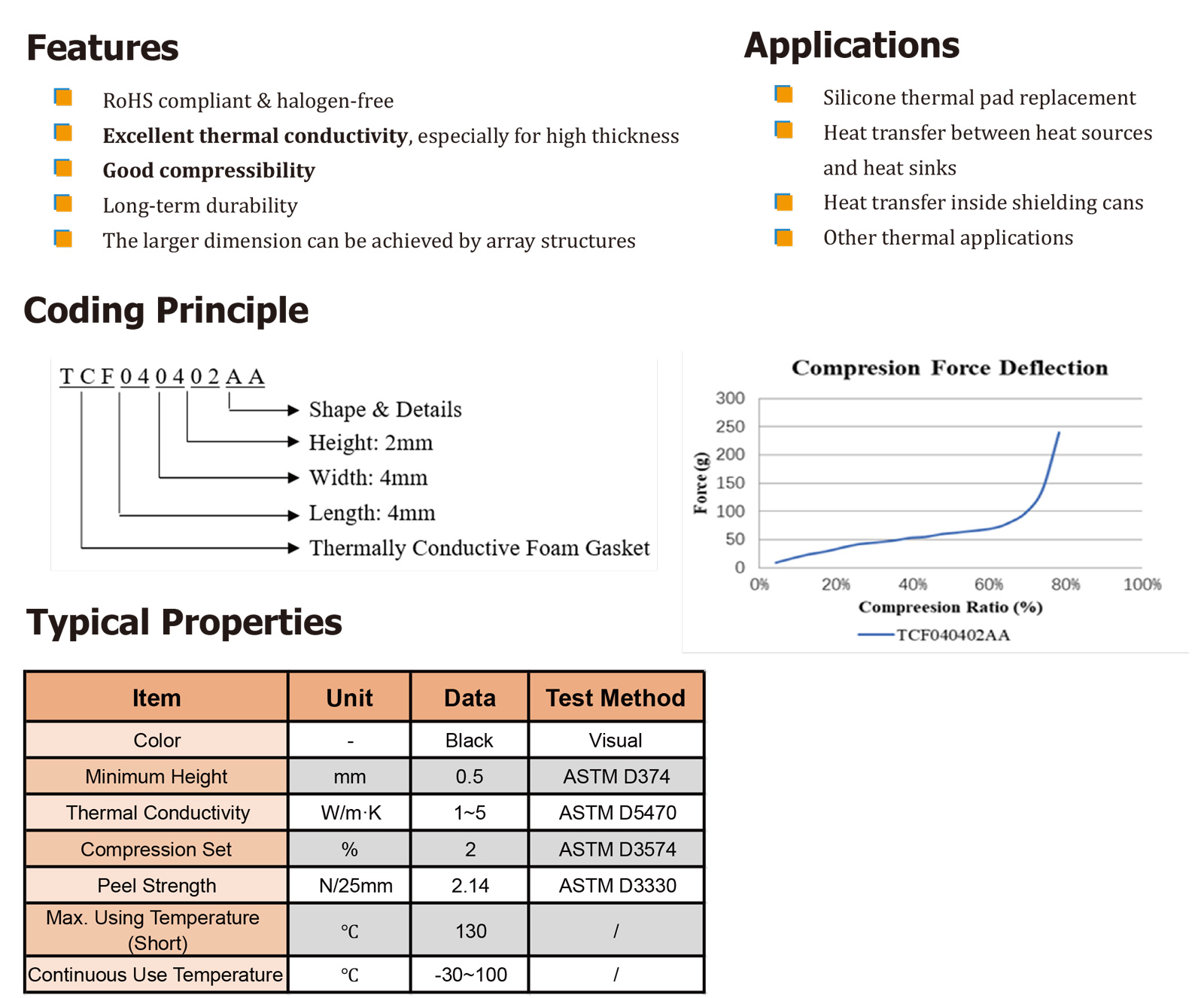 TM TCF系列導(dǎo)熱泡棉墊片是一種由聚氨酯和合成石墨四面包裹而成的導(dǎo)熱墊片。" />