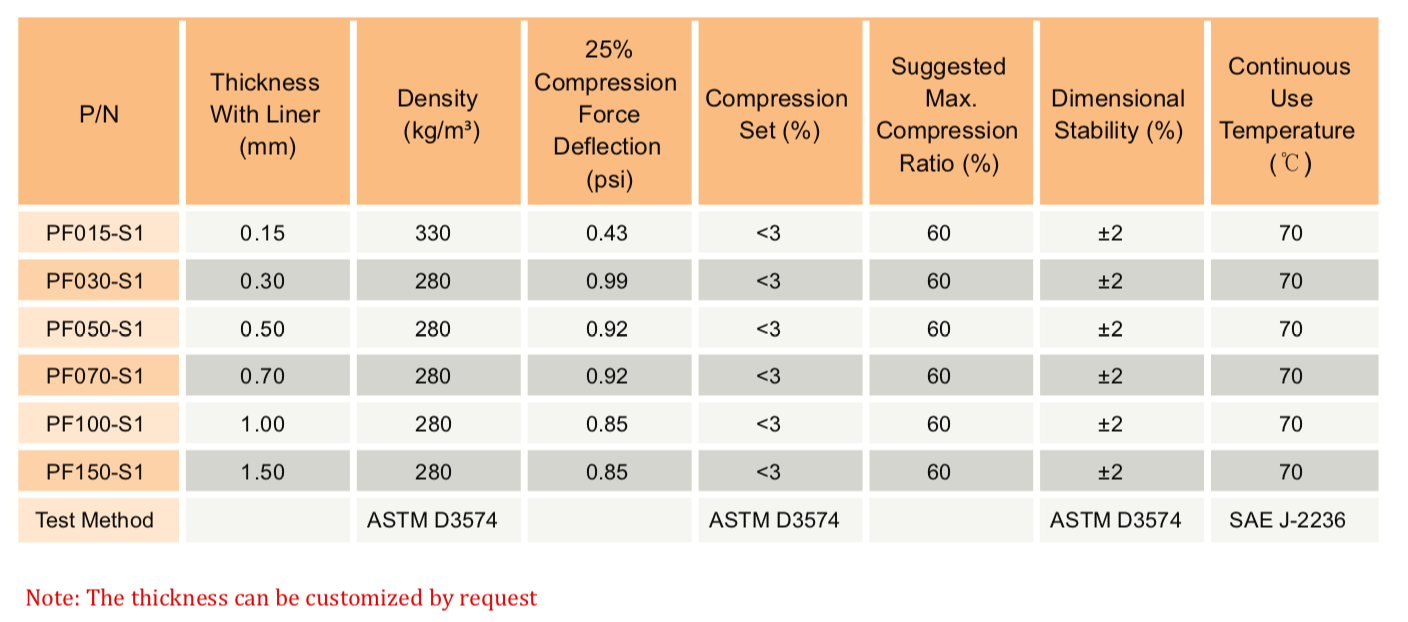 TMPF-S1 系列是一種超柔軟、緩慢回彈的泡棉,用于電子設(shè)備的緩沖、保護(hù)性密封和長(zhǎng)期間隙填充??梢赃_(dá)到60%的壓縮比。S1系列泡棉具有極低的壓縮永久變形、高密封性能和優(yōu)異的沖擊吸收性能。" />
