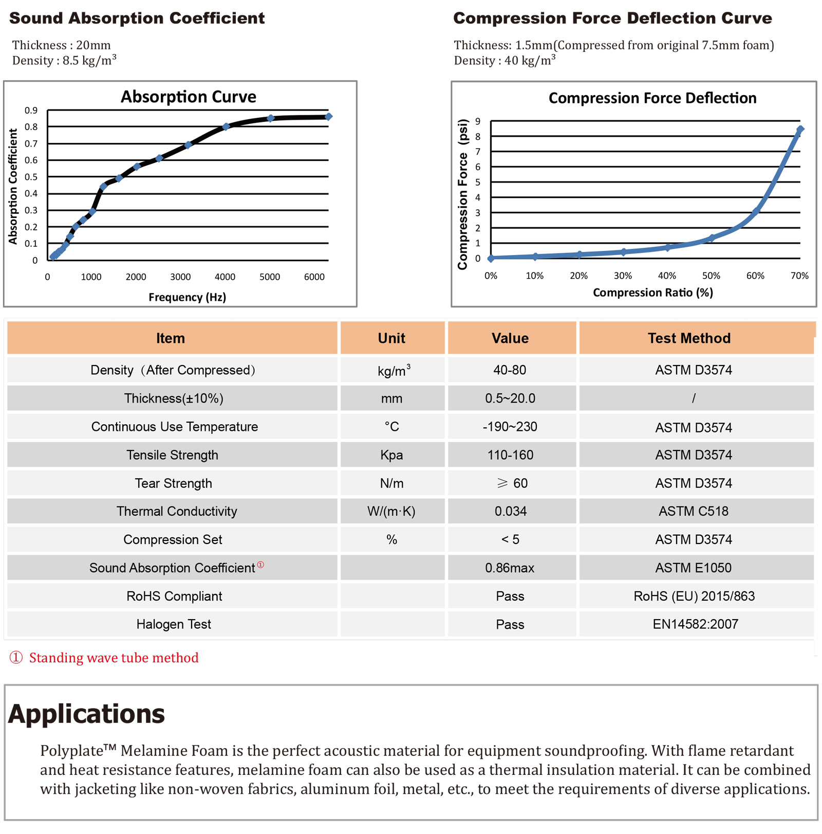 TM 三聚氰胺泡棉是由三聚氰胺樹(shù)脂制成的熱固性聚合物。開(kāi)孔具有三維網(wǎng)狀結(jié)構(gòu)的特征。這種結(jié)構(gòu)使得泡棉在阻擋噪聲和隔熱方面有效。三聚氰胺泡棉以三聚氰胺樹(shù)脂為原料,本身具有優(yōu)異的阻燃性能。三聚氰胺泡棉還具有優(yōu)異的耐溫性和熱穩(wěn)定性。它可以在極端溫度下保持其物理特性。在電子行業(yè),這種泡沫通常被壓縮到其原始厚度的15%-20%,以獲得最佳的吸聲效果。標(biāo)準(zhǔn)泡沫顏色為白色和灰色。其他顏色可根據(jù)要求提供。" />