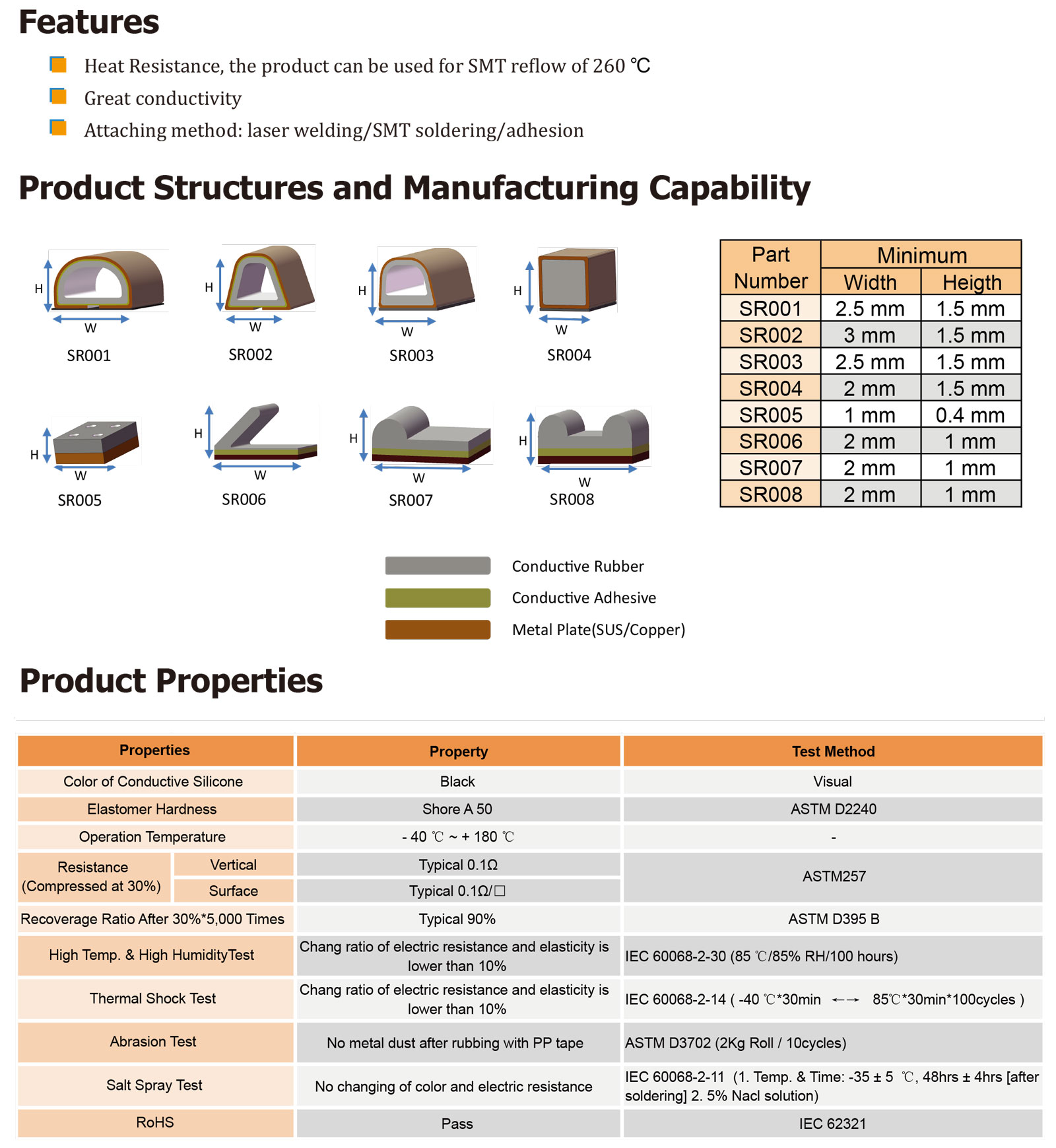 TM SR系列SMT橡膠墊片是一種矩形形狀、寬度較窄的產(chǎn)品,設(shè)計(jì)用于PCB和FPCB的接地墊或連接器,能夠有效屏蔽電子產(chǎn)品的EMI/RF噪音。是一種可回流焊接的彈性導(dǎo)電介質(zhì),可以通過SMT(表面貼裝技術(shù))安裝在PCB和FPCB上。" />